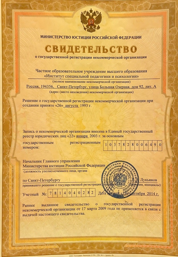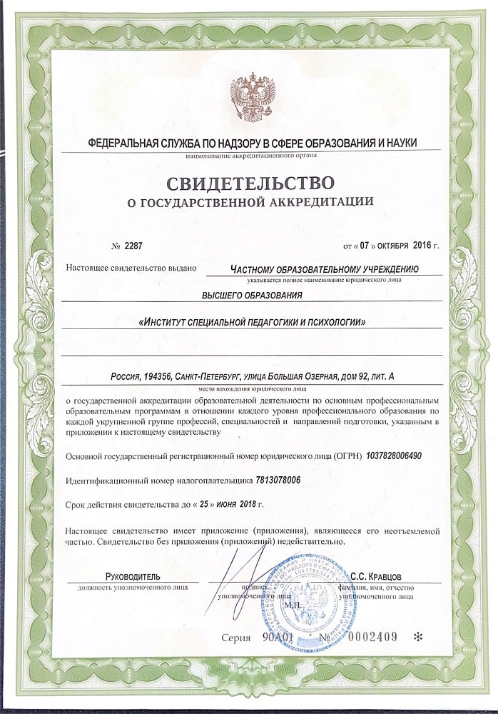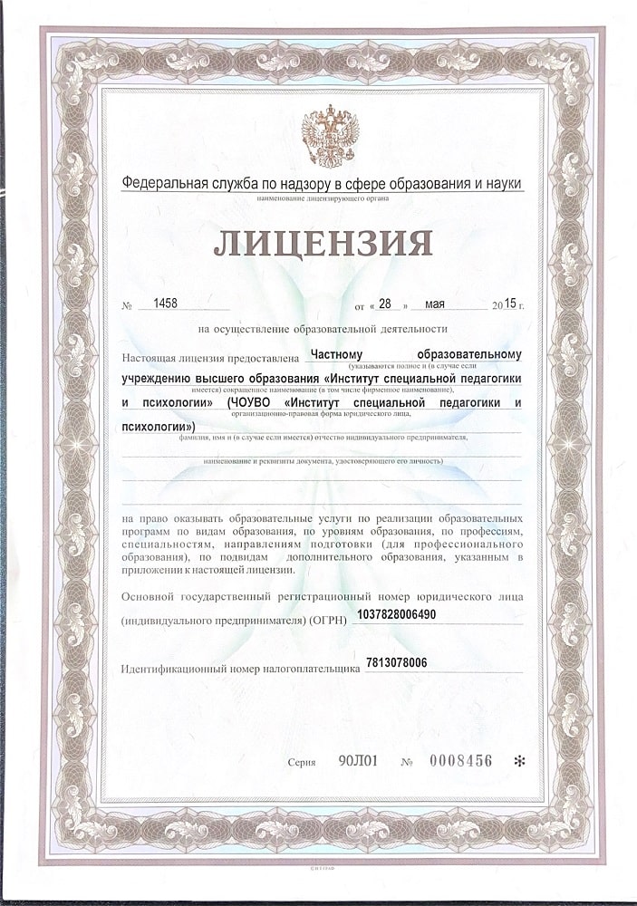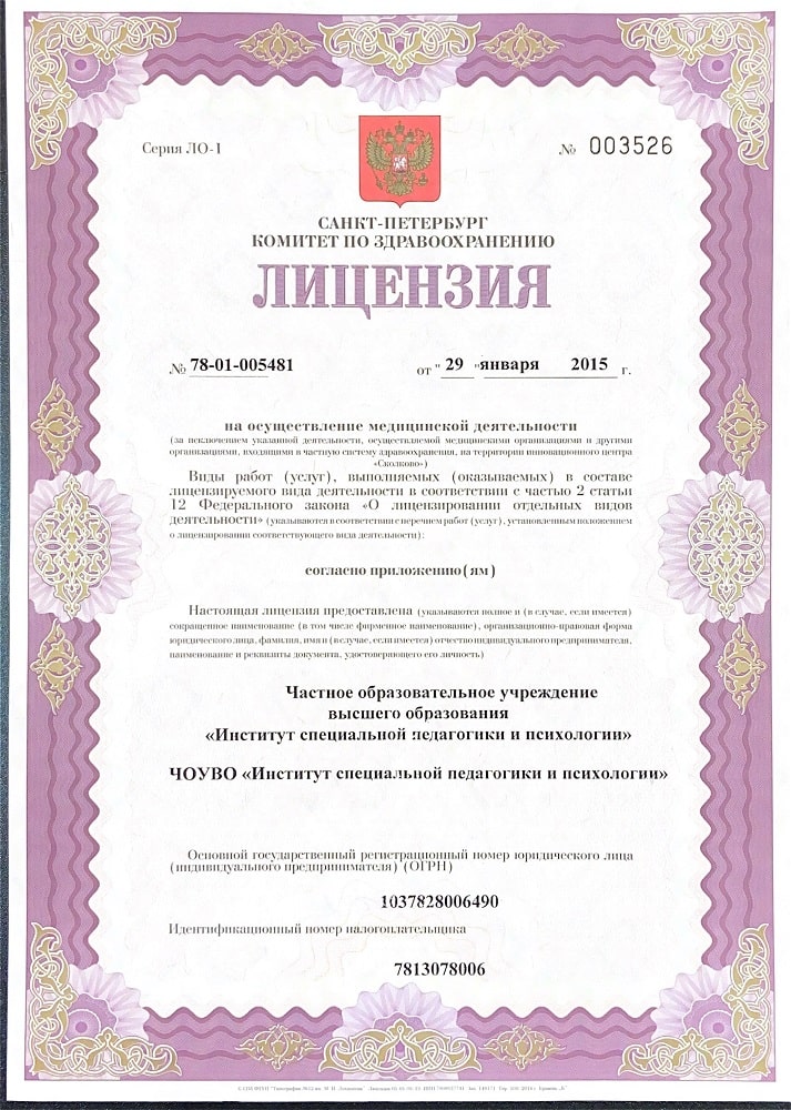 Институт специальной педагогики и психологии им. Р.Валленберга имеет лицензии на осуществление образовательной и медицинской деятельностей.